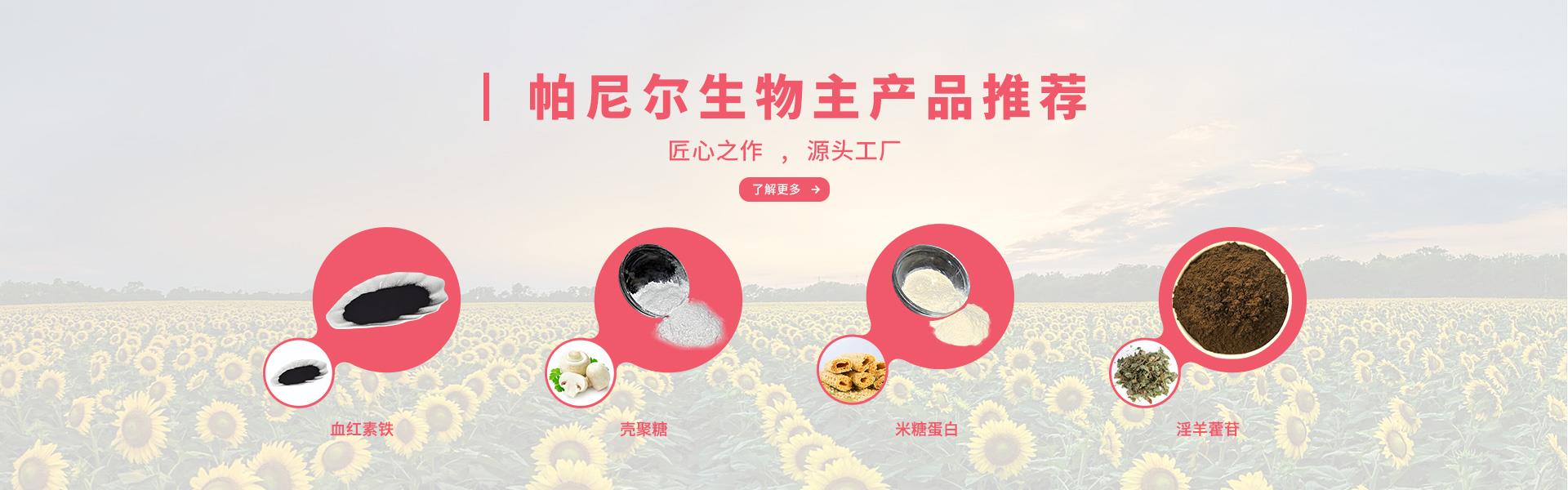 陕西帕尼尔生物科技有限公司成立于2012年,注册资本300万元。公司自成立以来,致力于发展真菌壳聚糖、有机大米蛋白、水杨苷、当归提取物、甲状腺粉、绞股蓝甙、血红素铁、万寿菊提取物叶黄素、菠萝蛋白酶、还原型谷胱甘肽医药原料及中间体的生产、经营及植物提取物的进出口贸易,与亚洲其它国家及欧洲、美洲、非洲国家均有贸易往来,目标发展成为国内重要的医药化工原料出口商和全球最新医药原料进口商。